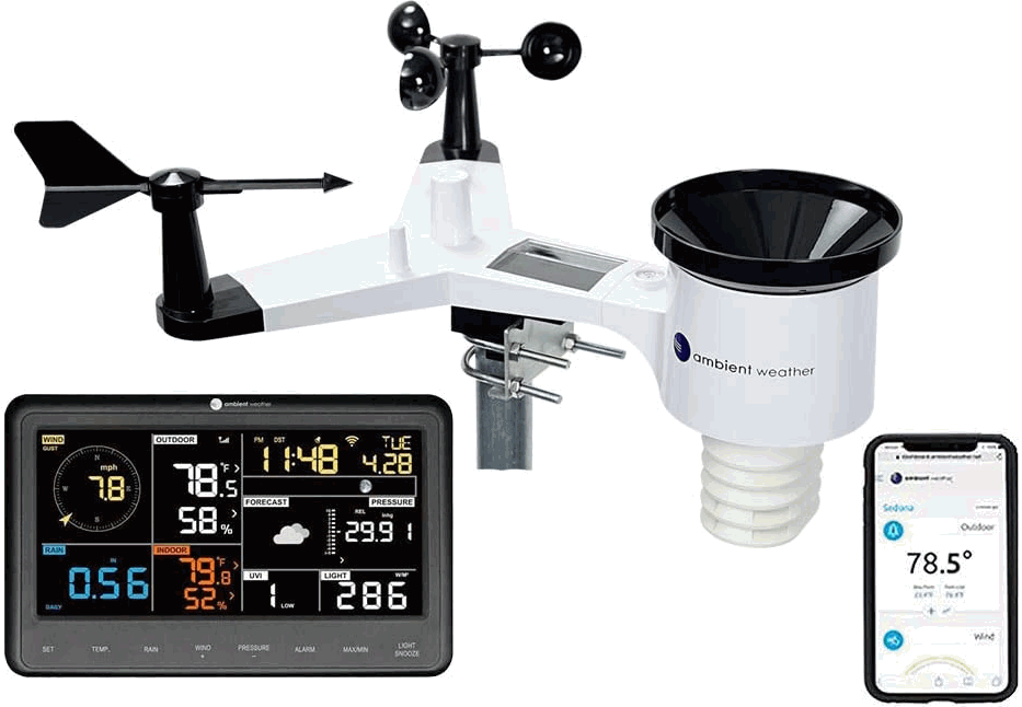 Ambient Weather Stations suitable for use with StationPlaylist Studio Pro. Uploads data to Weather Underground which Studio can access. Display temperature, humidity, pressure, and wind speed directly in Studio, and automatically say the temperature, humidity, or "feels like" temperature over the air using our temperature files or your own. | ||